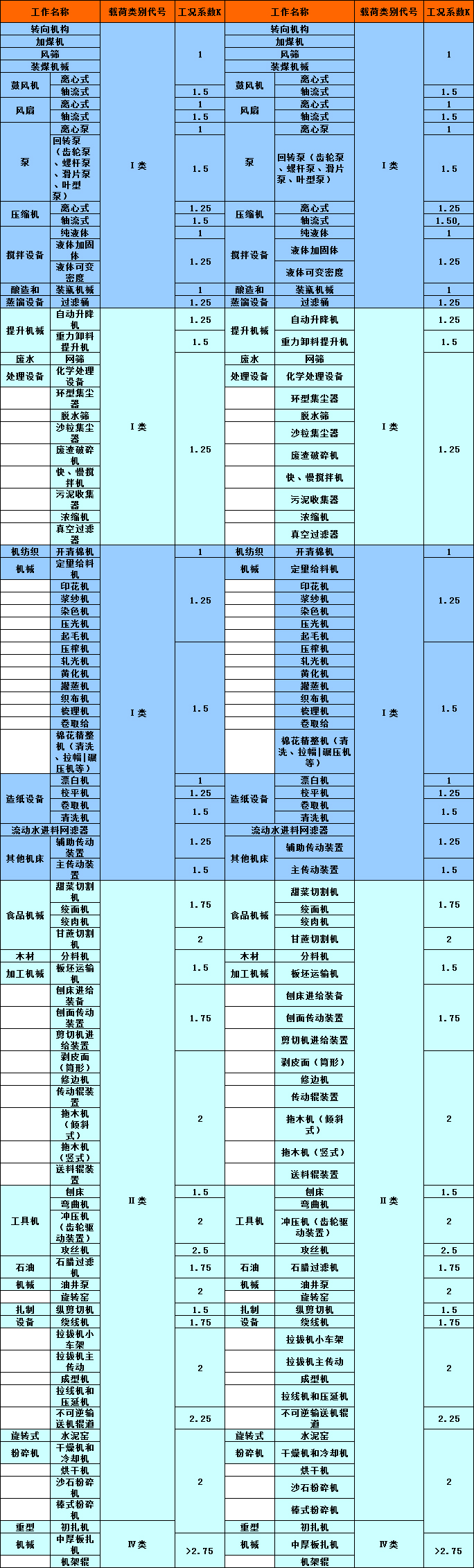 | 载荷分类 | 均匀载荷 | 中等冲击载荷 | 重冲击载荷 | 特重冲击载荷 |