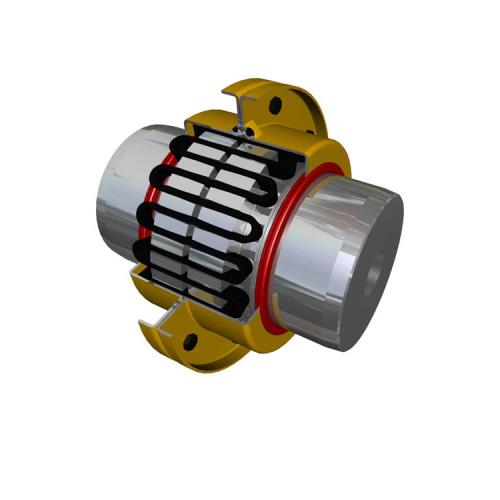 蛇簧联轴器的结构紧凑、外形尺寸小,适用于连接两同轴线的中、大功率的传动轴系。具有补偿两轴相对偏移的减震、缓冲性能。工作温度为-30℃-+150℃,传递公称转矩52-931000N.m.一般两轴相对的许用位移量:轴向为4-20mm;径向为0.5-3mm;角位移为1°15′。蛇簧联轴器应用于各工业领域。