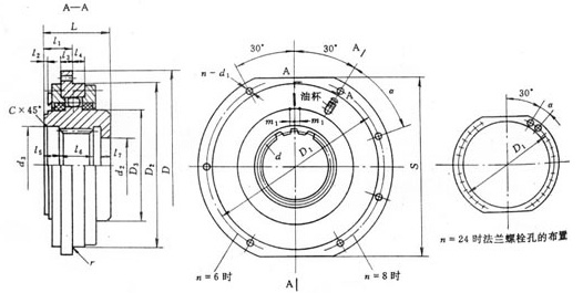 WJ球面滚子联轴器基本参数和主要尺寸(JB/T 7009-93) mm