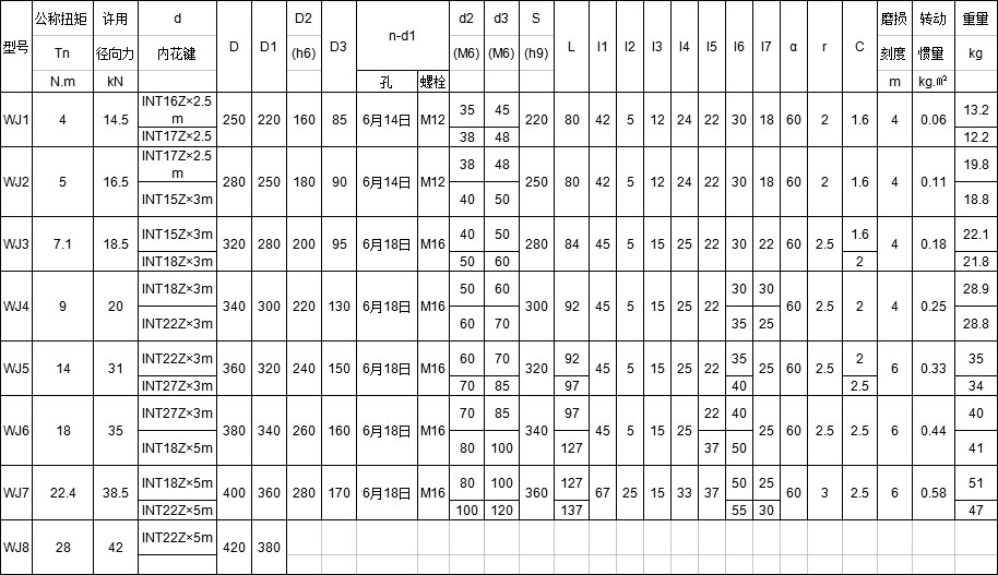 WJ型--内花键联接型;